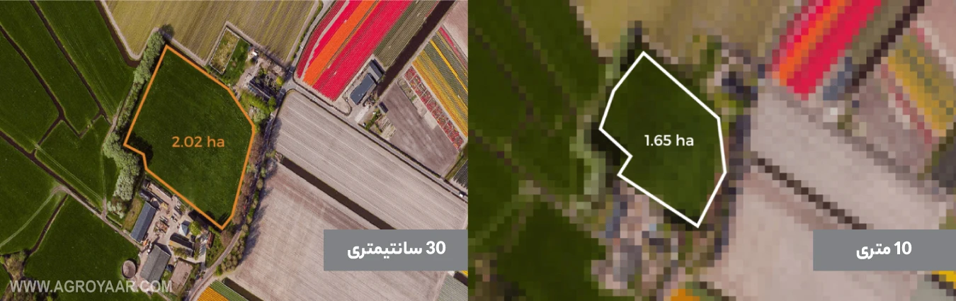 - هزینه بالای دادههای دقیق: بسیاری از کاربردهای سنجش از دور مانند پایش علفهای هرز یا بیماریها، نیاز به تصاویر با وضوح مکانی بسیار بالا (در حد سانتیمتر) دارند. تصاویر با وضوح مکانی و طیفی بالا معمولاً رایگان نیستند و تهیه آنها بهویژه برای مزارع کوچک، پرهزینه است.